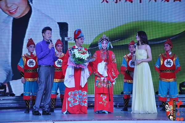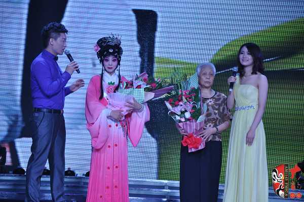 在6月16日舉辦的關(guān)小鳳個人戲曲專場中,關(guān)小鳳之女、24歲的張聰表演了豫劇《情斷狀元樓》“打神告廟”及《抬花轎》的“坐轎”兩折戲。畢業(yè)于河南省藝校的張聰現(xiàn)場表演稍顯稚嫩,但也獲得了觀眾的熱情鼓勵。張聰在接受記者采訪時說,自己戲校畢業(yè)之后到了福建省一閩劇團(tuán)工作,已經(jīng)有五、六年未接觸豫劇了。媽媽歷經(jīng)艱辛把自己帶大,特別不容易,這次為了支持媽媽的專場演出,她專程回河南、花十天時間趕排了兩折戲……在張聰表演完《抬花轎》的“坐轎”一折,一位身穿狀元紅袍、手捧鮮花、操南方口音的英俊小伙上臺向“周鳳蓮”求婚,經(jīng)張聰介紹,觀眾才豁然明白,英俊小伙乃她的老公,結(jié)婚時,媽媽關(guān)小鳳因?yàn)槊τ诠ぷ魑茨軈⒓?,借此現(xiàn)場要補(bǔ)行跪拜大禮,以感謝母親的養(yǎng)育之恩。此情此景,讓現(xiàn)場不少觀眾為之動容。
