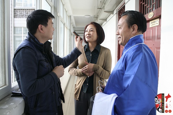并采訪河南省越調(diào)劇團(tuán)著名演員李娟(中)和票友