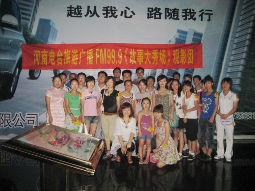 由河南電臺(tái)旅游廣播《故事大秀場》組織的《無人駕駛》觀影團(tuán)合影