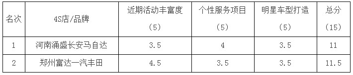 按照慣例,還是從排名倒數(shù)第一(黑榜第一名):河南涌盛長安馬自達4S店,不過11分已經(jīng)是不錯的成績了,只怪其他店整體水平太高,就認慫吧~