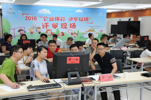 評(píng)審工作分四組進(jìn)行,每組評(píng)審人員首先對(duì)報(bào)名學(xué)校提供的基本情況進(jìn)行逐項(xiàng)了解,同時(shí),通過(guò)學(xué)校提供的校園、現(xiàn)有操場(chǎng)、器材室等實(shí)景照片,對(duì)是否提供捐贈(zèng)進(jìn)行綜合打分。最后由工作人員對(duì)每組評(píng)委的打分進(jìn)行匯總,按照每所學(xué)校得分高低進(jìn)行排序,前25名的學(xué)校入圍2016“公益體彩 快樂(lè)操場(chǎng)”(河南)實(shí)地考察名單。