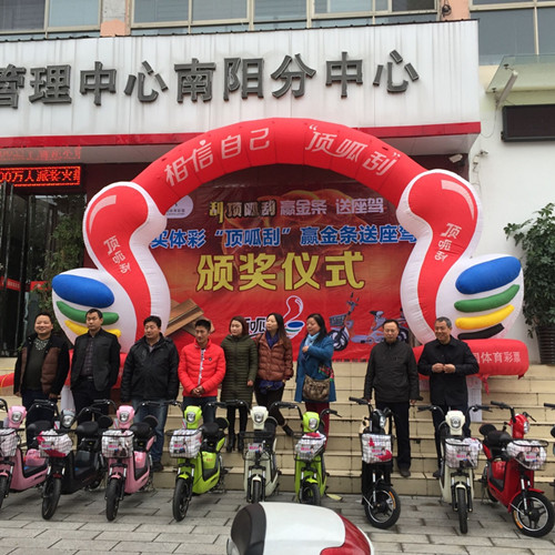 10月30日 河南體彩洛陽(yáng)分中心向獲獎(jiǎng)彩民頒發(fā)37輛電動(dòng)車
