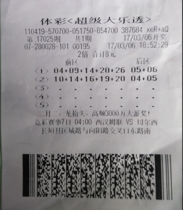 3月20日一大清早,新鄉(xiāng)市體彩分中心來了一對小兩口,詢問后小兩口高興的說自己買的大樂透中獎了,中了一萬多,今天來分中心辦理兌獎手續(xù)。