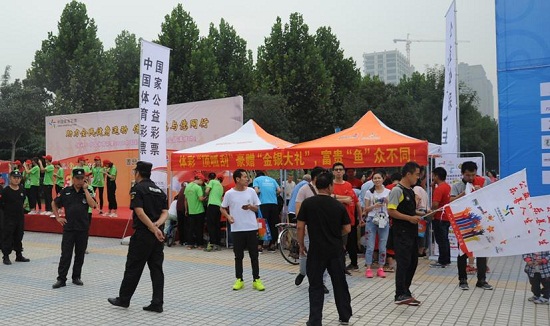 河南省體育彩票管理中心黨支部書(shū)記王海新也來(lái)到了徒步大會(huì)現(xiàn)場(chǎng)檢查體彩宣傳展示和銷(xiāo)售工作,并為體彩隊(duì)參賽選手加油助威。王海新介紹說(shuō),習(xí)總書(shū)記在今年8月27日會(huì)見(jiàn)全國(guó)體育先進(jìn)單位和先進(jìn)個(gè)人代表時(shí)的重要講話(huà)中強(qiáng)調(diào):“體育承載著國(guó)家強(qiáng)盛、民族振興的夢(mèng)想。體育強(qiáng)則中國(guó)強(qiáng),國(guó)運(yùn)興則體育興。要把發(fā)展體育工作擺上重要日程,精心謀劃,狠抓落實(shí),不斷開(kāi)創(chuàng)我國(guó)體育事業(yè)發(fā)展新局面,加快把我國(guó)建設(shè)成為體育強(qiáng)國(guó)?!焙幽象w彩人要深入學(xué)習(xí)領(lǐng)會(huì)習(xí)總書(shū)記重要講話(huà)的精神實(shí)質(zhì),努力實(shí)現(xiàn)我省體育彩票市場(chǎng)的健康可持續(xù)發(fā)展,籌集更多的公益金,為體育事業(yè)和社會(huì)公益事業(yè)提供更充足的資金保障。同時(shí),河南體彩人自身也要加強(qiáng)體育強(qiáng)國(guó)意識(shí),在加強(qiáng)自我健身鍛煉的同時(shí),堅(jiān)持全民健身和全民健康深度融合,通過(guò)不同的形式,鼎力支持我省群眾體育和全民健身事業(yè),為加快體育強(qiáng)省建設(shè)和體育強(qiáng)國(guó)夢(mèng)的盡快實(shí)現(xiàn),做出體彩人的積極貢獻(xiàn)!