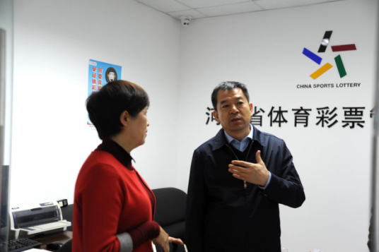 河南省體育局局長(zhǎng)、黨組書記李俊峰在調(diào)研中聽取省體彩中心工作匯報(bào)