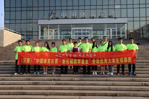 2017年,首批得到“中國體育彩票·新長城助學(xué)基金”資助的信陽師范學(xué)院2013級優(yōu)秀大學(xué)生畢業(yè)之際,河南省體育彩票管理中心還邀請其中的部分學(xué)生代表,在老師的帶領(lǐng)下到北京觀摩中國體育彩票現(xiàn)場開獎(jiǎng),在他們踏入社會(huì)進(jìn)入工作崗位之前,開闊眼界并深入了解和見證中國體育彩票作為國家公益彩票的公益屬性和公信力。