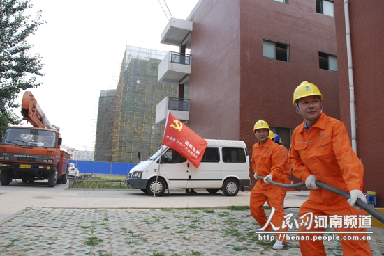 人民網(wǎng)南陽8月3日電 烈日炎炎,揮汗如雨,為確保第七屆全國農(nóng)運會順利舉辦,實現(xiàn)農(nóng)運會供電“電網(wǎng)安全零事故、保電現(xiàn)場零停電、供電設備零缺陷”為目標,南陽市電力公司職工頂著高溫酷暑緊張施工。
