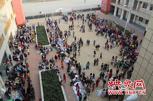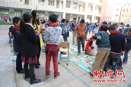 映象網(wǎng)教育頻道訊(記者 李照華 通訊員 張俊杰)為培養(yǎng)孩子們節(jié)約資源、愛護環(huán)境的意識和良好的行為習(xí)慣,讓學(xué)生們體驗“公平買賣”和“勞動快樂”,結(jié)識更多的朋友,本著“你的多余,我的需要”理念,通過舊書循環(huán)利用,以“書換書”和“錢買書”的方式,推廣循環(huán)經(jīng)濟、生態(tài)環(huán)保的思想。經(jīng)開區(qū)外國語小學(xué)經(jīng)過前期精心的準(zhǔn)備,于2015年11月4日下午,順利組織開展了主題為“悅分享 越快樂”的圖書“跳蚤市場”活動,讓學(xué)生把家中閑置的圖書在跳蚤市場活動中與同學(xué)等價交換或錢物交換。