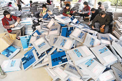 快遞公司員工在倉(cāng)庫(kù)外就地將包裹掃描后裝車(chē)。阿里巴巴發(fā)布數(shù)據(jù)稱,淘寶網(wǎng)平均每分鐘售出4.8萬(wàn)件商品。
