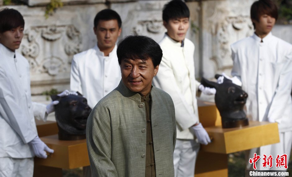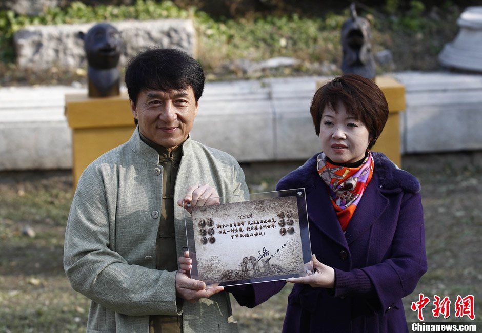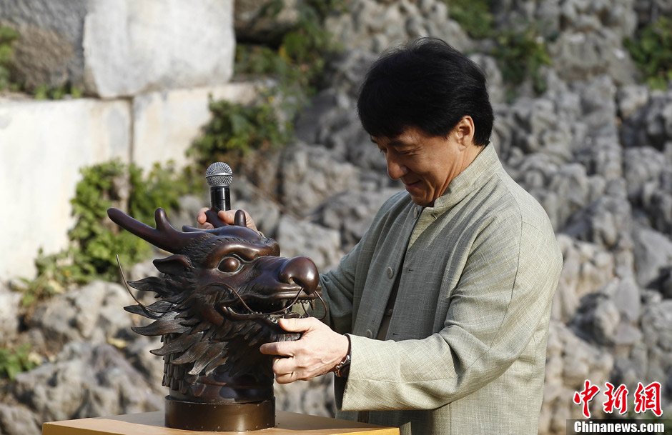 2012年10月30日,國際影星成龍?jiān)诒本﹫A明園舉行儀式,將在電影《十二生肖》中的“十二獸首”捐贈(zèng)給圓明園管理處。