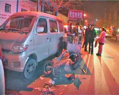 被撞的小吃攤一個(gè)是賣肉夾饃的,一個(gè)是賣鴨脖的。據(jù)賣肉夾饃的攤主說,肇事車司機(jī)是一個(gè)二三十歲的男子,當(dāng)時(shí)他曾停下來說“到前邊會(huì)停下來”,沒想到竟加速跑了。