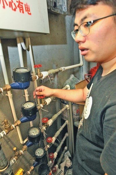 在該小區(qū)8號(hào)樓2單元的1樓水井房內(nèi),記者看到這里安裝的水表與日常所見有所差異:每塊水表旁都多了一根成人小拇指般粗細(xì)的銀白色金屬線。