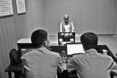 犯罪嫌疑人在公安局內(nèi)接受訊問(wèn)