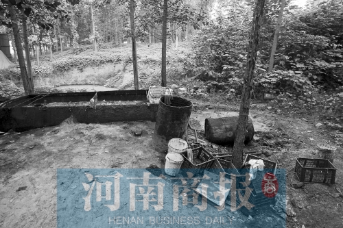 8月28日下午,老張又沿著107國道來到了鄭州市四環(huán)外。在鄭州黃河大橋往北約5公里的橋北鄉(xiāng),從國道旁一條小路左拐進(jìn)入一片樹林中,一處地溝油黑作坊又出現(xiàn)了。