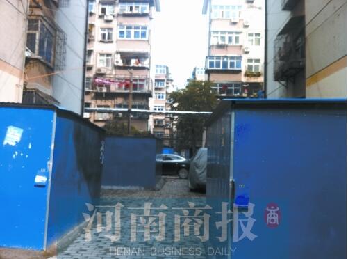 根據市民的反映,11月8日上午,河南商報記者來到位于百花路上的五棉社區(qū)。剛一進門,小區(qū)內一間間活動板房就顯得格外扎眼,每個占地5~10平方米左右,大小不一,門上都有一把大鎖鎖著。在小區(qū)門口也建了兩個板房,只留下一輛車通過的空間。