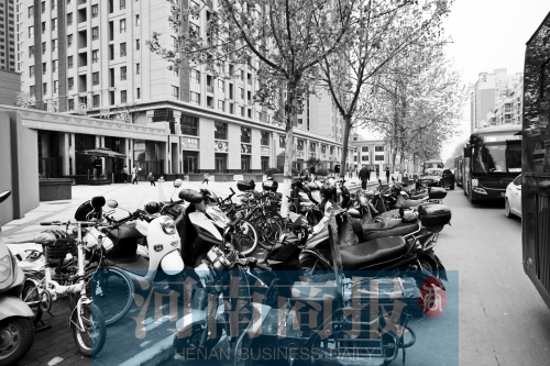 家住鄭州經(jīng)三路與廣電南路交叉口附近嘉辰麗景苑小區(qū)的李先生一直把電動車停放在小區(qū)大門外的人行道上。原因是小區(qū)非機動車停放點兒沒建好。而停放點建成后,物業(yè)要收費。李先生等業(yè)主因此事與物業(yè)產生了分歧。
