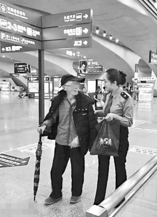 王娟拿著老人的一代身份證,通過河南省公安廳查詢到老人孫女吳女士的電話號(hào)碼。家人實(shí)在不放心老人獨(dú)自旅行,請(qǐng)求工作人員送老人回家。最終老人被說服,坐上了返鄭的列車。