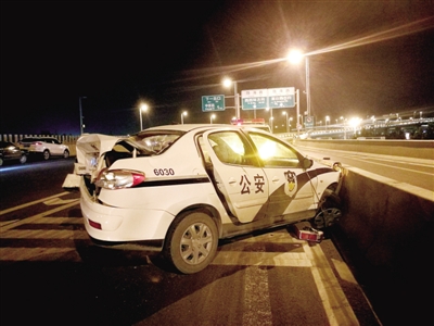 處理事故時(shí),執(zhí)行任務(wù)的警車遭到撞擊