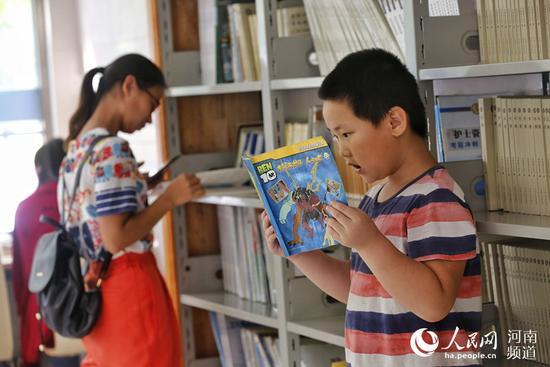 正值暑假,河南鄭州的24小時(shí)自助圖書(shū)館內(nèi),坐滿了前來(lái)看書(shū)和借書(shū)的市民,再掀閱讀熱潮。馬上就要讀初一的學(xué)生劉昇驊是個(gè)勤奮的孩子,每天早上7點(diǎn),他騎車(chē)從鄭州的東區(qū)趕到這里的自助圖書(shū)館,復(fù)習(xí)新的課程,晚上8點(diǎn)左右才離開(kāi)。