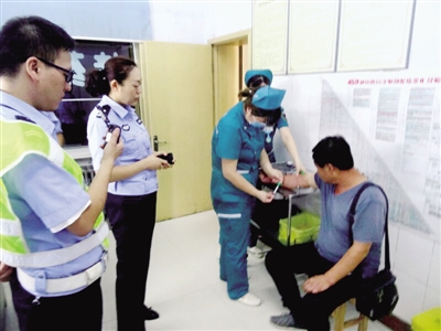 涉嫌酒駕司機接受血樣抽取等候進一步處理