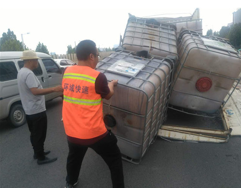 27日下午2時30分左右,中原區(qū)三官廟辦事處巡防隊員李玉章等人,巡邏到西三環(huán)與中原路交叉口附近,突然聽到由北向南的高架橋上橋口處傳來劇烈的撞擊聲,跑過去一看,是一輛貨車撞在了限高桿上。隊員們發(fā)現(xiàn)貨車上拉的一些方形大桶掉落在上橋口處的車道里,導致其它車輛無法上橋,忙上前與環(huán)城快速管理處的工作人員一起,將這些大桶抬到路邊,清出一個車道,協(xié)助交警指揮車輛緩慢通過。