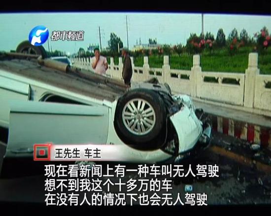 王先生說(shuō),當(dāng)時(shí)他將車停在路邊,準(zhǔn)備下車打電話,沒(méi)想到剛剛下車,車就自個(gè)兒跑了。汽車一路“狂飆”,王先生眼睜睜地看著自己的轎車撞向路中間的轉(zhuǎn)盤。