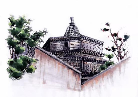 之后,他嘗試把手繪圖片發(fā)到網(wǎng)上,沒想到,畫稿頗受校友們的喜歡。從2015年到2017年,邢年轉(zhuǎn)創(chuàng)作了70余幅河南大學及開封古建筑手繪作品,其作品作為河大畢業(yè)生和新生紀念品,累計銷售超8000套。