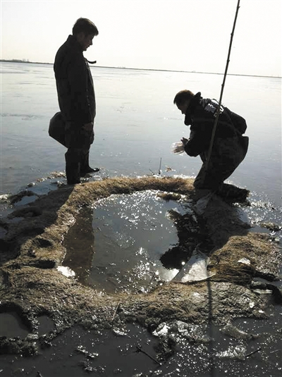 “毒池”位于北大港濕地保護區(qū)“萬畝魚塘”的中央地帶。在距濕地北岸約1公里處,警方發(fā)現(xiàn)了第一處毒池。在廣闊而平坦的水面上,這處長約1.5米,寬約1米的人造土坑十分顯眼。