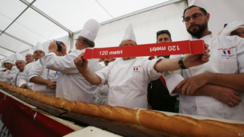意法面包師聯(lián)手烤世界最長面包棍 長120米