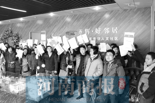2016年12月30日上午,河南商報記者陪同數(shù)十位購房者來到“齊輝·好鄰居”售樓部,但并無銷售經(jīng)理接待,售樓部財務(wù)室內(nèi)有幾名工作人員,面對提問,工作人員沉默不語。