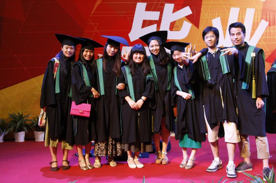 2013年6月26日晚,杭州,中國(guó)美院舉行2013屆畢業(yè)典禮,本科畢業(yè)生統(tǒng)一身著新式學(xué)位服拍照留念。