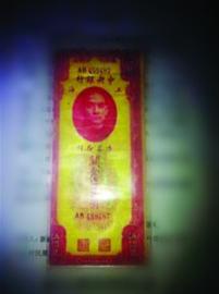 昨日上午9時(shí)許,在鐵西區(qū)永樂(lè)附近的亢女士,在網(wǎng)上發(fā)出一張照片,上面是用透明塑料袋包裝的“紙幣”,紙幣上畫(huà)有孫中山頭像,從右至左寫(xiě)著中央銀行四個(gè)字,接著是用繁體字寫(xiě)下的面值“五百萬(wàn)”元,紙幣下還有一行小字寫(xiě)著“民國(guó)三十六年”。