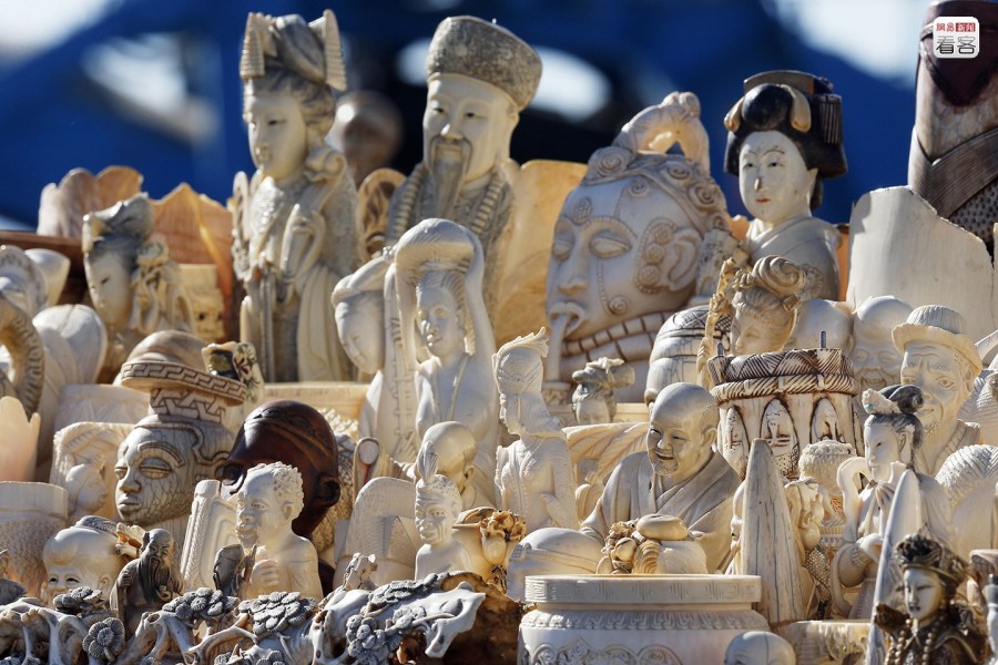 中國(guó)對(duì)象牙市場(chǎng)采用收藏證和特許經(jīng)銷制度,象牙制品一對(duì)一配有國(guó)家林業(yè)局頒發(fā)的收藏證。但中國(guó)一半以上的合法象牙加工銷售企業(yè)牽涉非法貿(mào)易,將走私象牙“洗白”。圖為2010年6月30日,杭州,一名收藏愛好者在西泠春拍預(yù)展上查看一件象牙工藝品。CFP