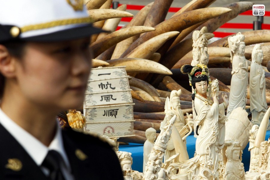 中國(guó)2008年獲準(zhǔn)從南部非洲四國(guó)進(jìn)口象牙,但未能使國(guó)內(nèi)非法象牙買賣趨緩,反而刺激了新的消費(fèi),成為非法市場(chǎng)的灰色保護(hù)傘。圖為2013年8月7日,香港,海關(guān)人員在葵涌海關(guān)的貨物抽檢中查出1120根象牙,13根犀牛角以及5件美洲豹皮。這艘貨船來(lái)自尼日利亞,謊稱是運(yùn)送食物。REUTERS