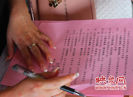宣誓完后,參加宣誓的各鄉(xiāng)鎮(zhèn)、各有關(guān)委局、旅游景區(qū)、星級(jí)酒店、景區(qū)商戶、旅行社以及農(nóng)家賓館業(yè)主紛紛簽訂了《欒川旅游服務(wù)“八不”承諾書》。承諾內(nèi)容包括:不漫天要價(jià),欺客宰客;不以假充真,以次充好;不強(qiáng)買強(qiáng)賣,欺壓游客;不態(tài)度粗暴,惡語傷人;不厚此薄彼,因人而異;不見利忘義,擅自違約;不虛假宣傳,誤導(dǎo)消費(fèi);不推諉扯皮,怠慢游客。