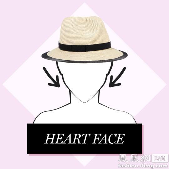 瓜子臉的特征是額頭大,下巴窄,因此適合中等寬度的帽檐和中等高度的帽冠。
