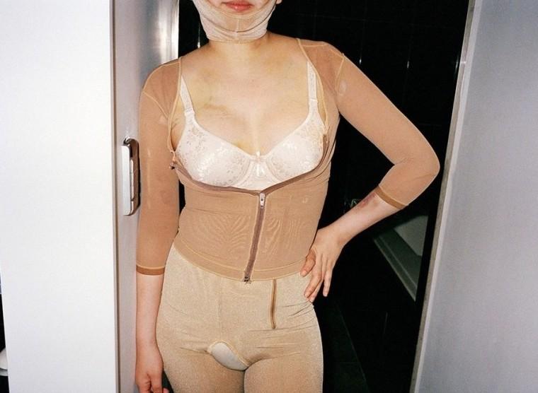 束身衣上下的身型是她的過(guò)去和未來(lái),滿是術(shù)后的淤青,疼痛成為美麗代價(jià)的一部分。