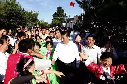 2015年7月16日,習(xí)近平在延邊州和龍市東城鎮(zhèn)光東村同當(dāng)?shù)厝罕娫谝黄稹S浾?鞠鵬 攝