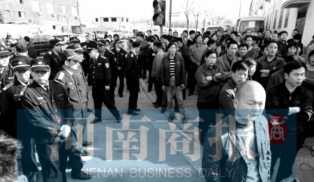 4月5日下午3時20分許,鄭州市長江路與工人路交叉口東、西、北三個方向的路口處,站著近百人,將此處堵得嚴(yán)嚴(yán)實實,過往車輛只能繞行。