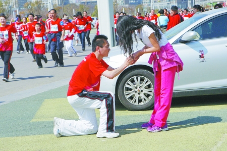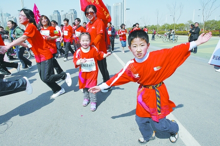 3月27日上午,鄭開國際馬拉松賽五公里小馬拉松比賽在鄭東新區(qū)舉行,情侶方隊(duì)、親子方隊(duì)等各具特色的參賽隊(duì)伍,給緊張的比賽帶來了輕松和快樂。