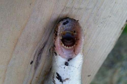 只見這條形似鰻魚的生物正張著圓圓的大嘴,里面布滿了鋒利的牙齒,頭部側(cè)面均勻分布著七個小孔。莫非這是什么新物種?這樣想著,男子試圖將它捉住。