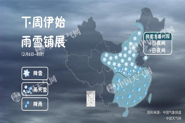 不過,今天開始隨著一股冷空氣影響我國,中東部將出現(xiàn)大范圍雨雪天氣。中央氣象臺預(yù)計,2月6日至8日夜間,西北地區(qū)東部、華北、黃淮中西部將有小到中雪,陜西關(guān)中、河南南部、湖北西北部、安徽沿淮地區(qū)、江蘇中北部等地有雨夾雪或雨夾雪轉(zhuǎn)雪,上述局部地區(qū)有大雪;西南地區(qū)東部、漢水下游、江淮、江南和華南等地有小到中雨。