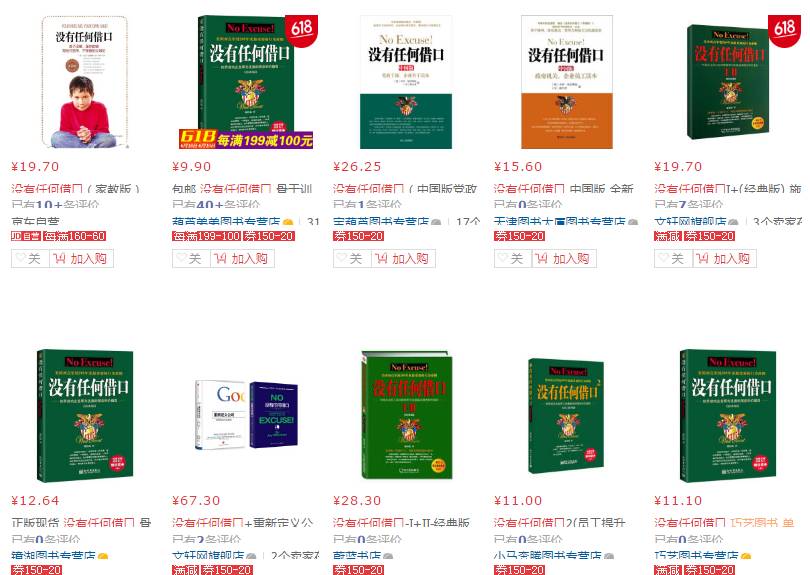 目前,以“沒有任何借口”為名的其他跟風(fēng)書仍在各大網(wǎng)站銷售。
