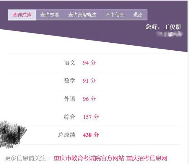 據(jù)悉,王俊凱438分的總成績(jī)?cè)谥貞c市的高考分?jǐn)?shù)線中,超過二本線2分,對(duì)于一個(gè)藝考成績(jī)來說,實(shí)屬不易。