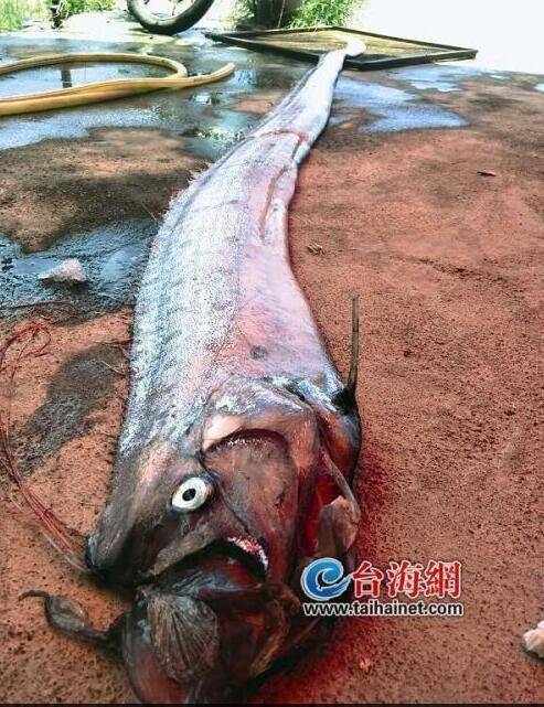林先生將其拉上岸,他說,這怪魚看起來像帶魚,好像剛死,頭部看起來很嚇人。隨后,他把它撿回村里,村民從未見過這種魚,林先生想把它賣掉,結果沒人敢買。