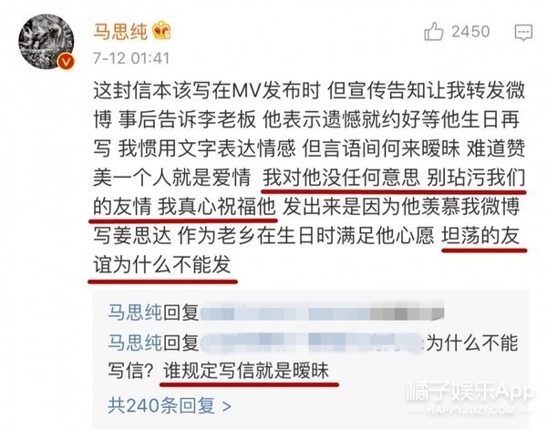 馬思純在今天凌晨的時候發(fā)了一條評論解釋說這是李榮浩讓她寫的,她只是真心祝福他的生日,對他沒有任何意思,兩人的友情坦坦蕩蕩的。
