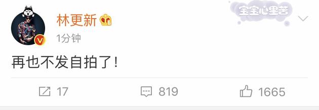 隨后,林更新便刪除微博,發(fā)文稱:“再也不發(fā)自拍了”。