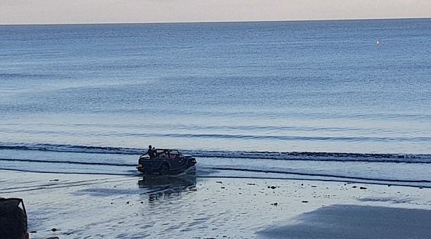 據(jù)《每日郵報》7月27日報道,近日,在英國康沃爾郡一間名為“The Hidden Hut”的海邊餐廳里,數(shù)百名正在享用大餐的顧客目睹了一輛吉普車在海上化身成快艇高速行駛的全過程?!薄 ?jù)其他目擊者反映,當吉普車在海面上像快艇一樣高速行駛的時候,全場驚呆了,接著爆發(fā)出歡呼聲和掌聲。