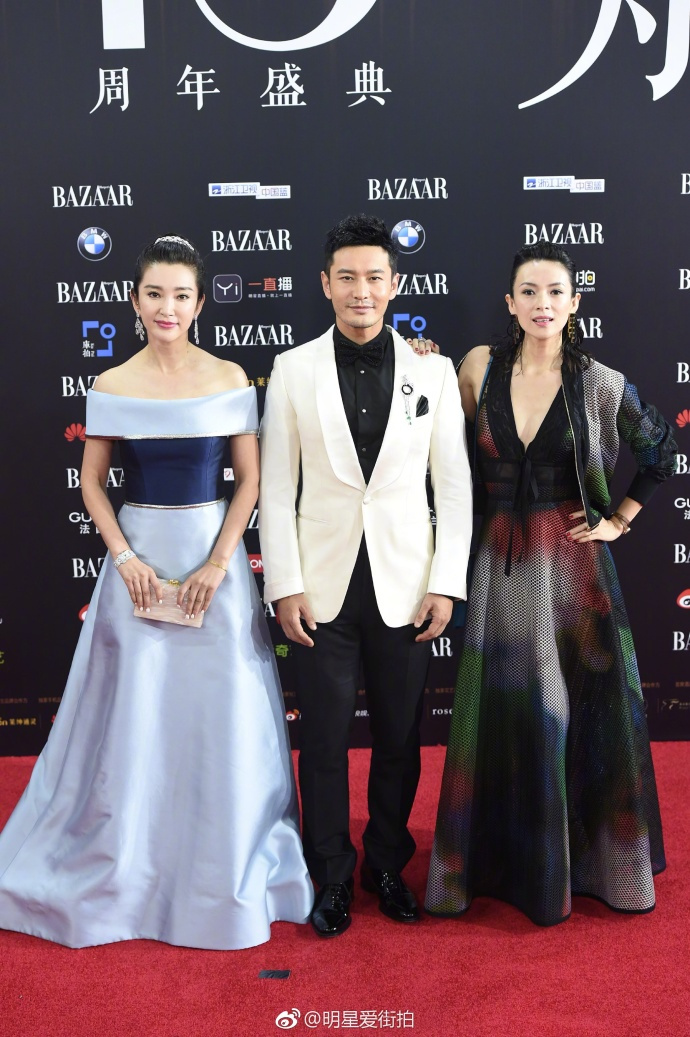 黃曉明一邊一個(gè)大花旦,“艷福不淺”啊!章子怡穿低胸網(wǎng)紋裙半露香肩展女王氣質(zhì),李冰冰頭戴王冠著一字肩湖藍(lán)公主裙走起甜美風(fēng),我說(shuō)最佳男閨蜜一定要頒給教主,雖然這張圖把他拍成1米6。