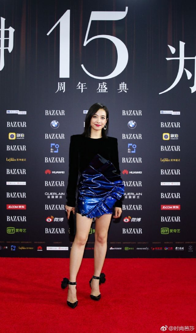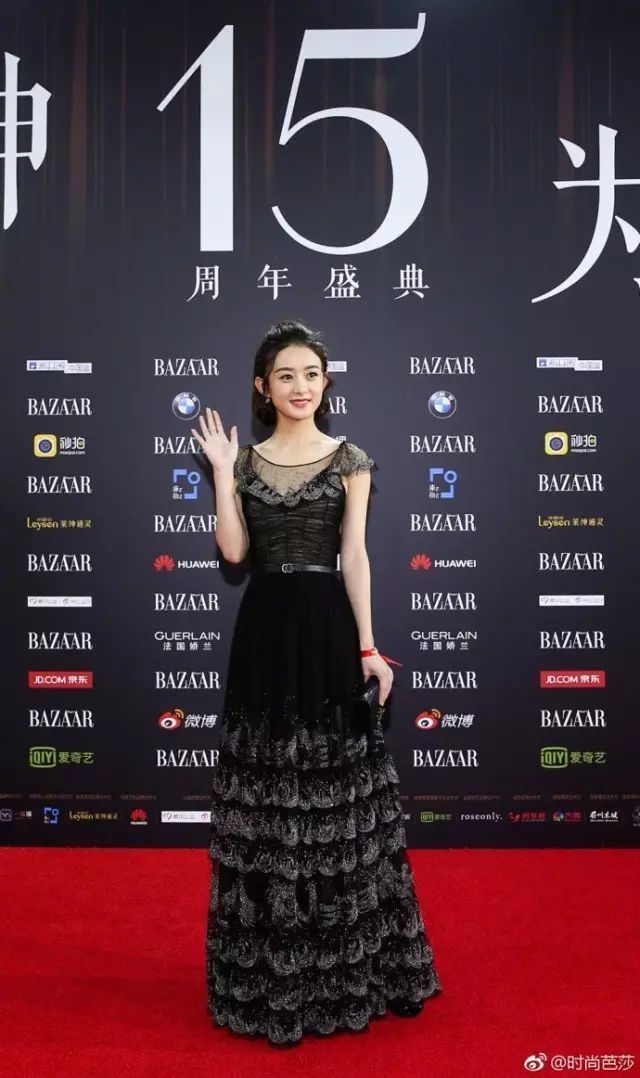 剪了短卷發(fā)的趙麗穎俏皮許多,一身黑色長(zhǎng)裙莊重中帶著一絲可愛(ài)。